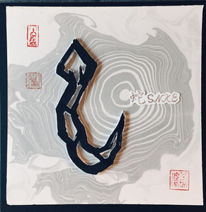 作品为一米榜书,作者以茅龙笔书于纸板上再刻出,用装饰布作背板。